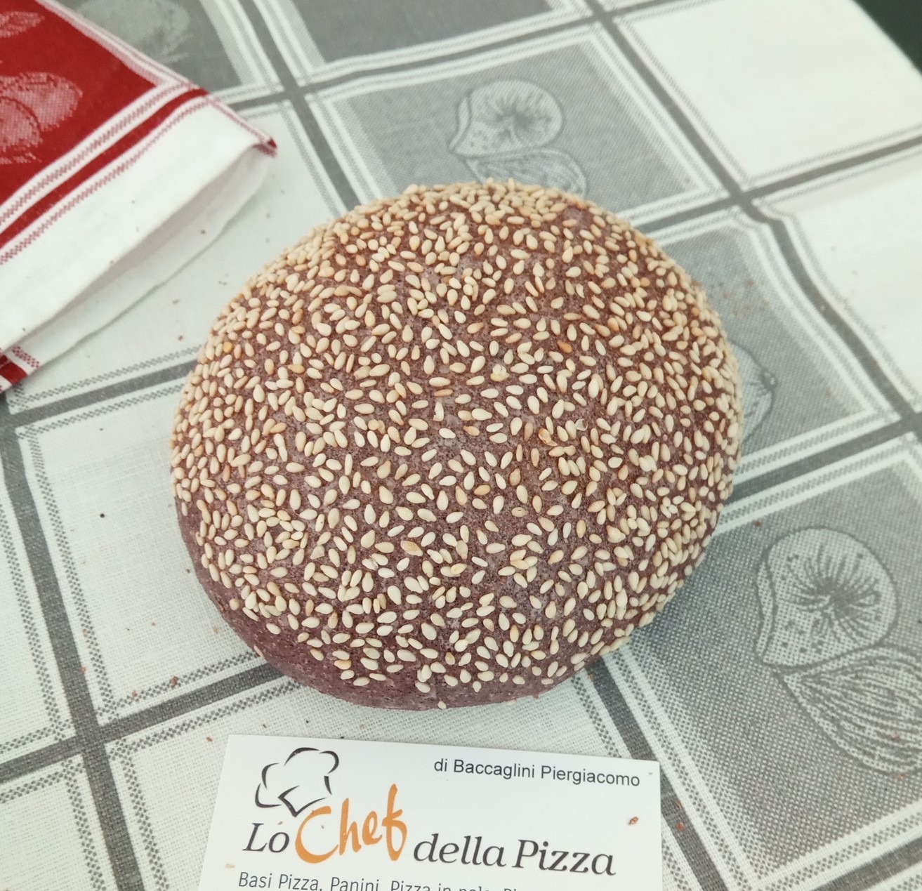 Nostra esclusiva ricetta, con farine di frumento 100% Italiano macinato a pietra, germe di grano e farina di riso Venere 100% italiana. Questo tipo di panino si contraddistingue per il suo colore scuro, il profumo d’erba e vinaccia, il sapore minerale e sapido.